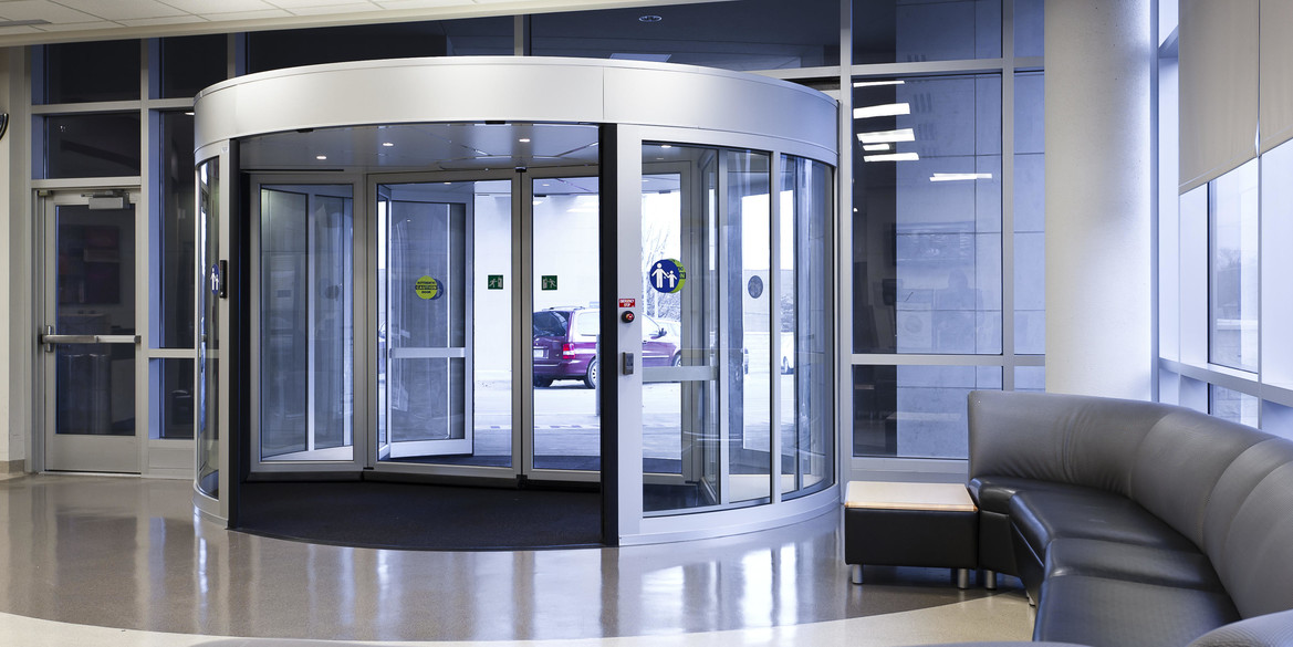 High-capacity revolving doors for high-traffic entrances