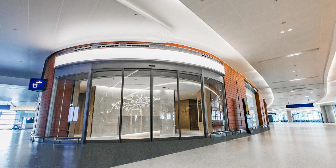 ASSA ABLOY SL500-C sliding door makes it possible to design the entrance in three dimensions, with depth in addition to the normal width and height. This gives the entrance an elegant and decorative appearance whilst it remains extremely functional. The ASSA ABLOY SL500-C curved sliding door system (bi-parting with two leaves) can be tailored to meet different customer requirements within the stated parameters.